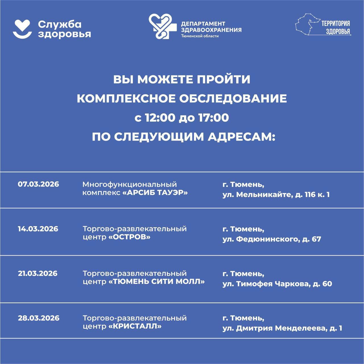14 марта медицинские специалисты проведут профилактическую акцию для всех желающих в ТРЦ «Остров» (ул. Федюнинского, 67). Приходите всей семьей с 12:00 до 17:00.