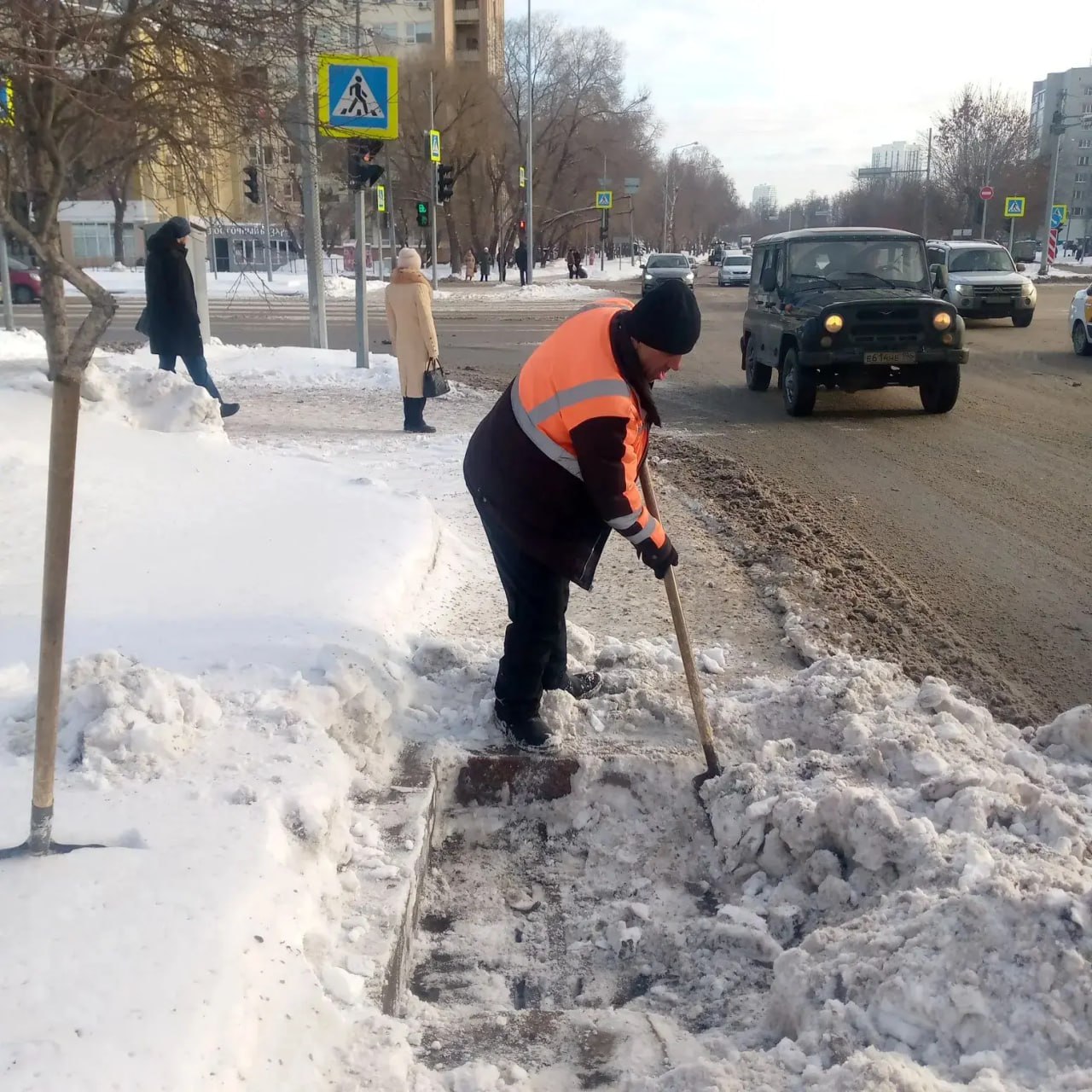 В дневную смену на уборку города вышло 720 единиц спецтехники и 614 дорожных рабочих.