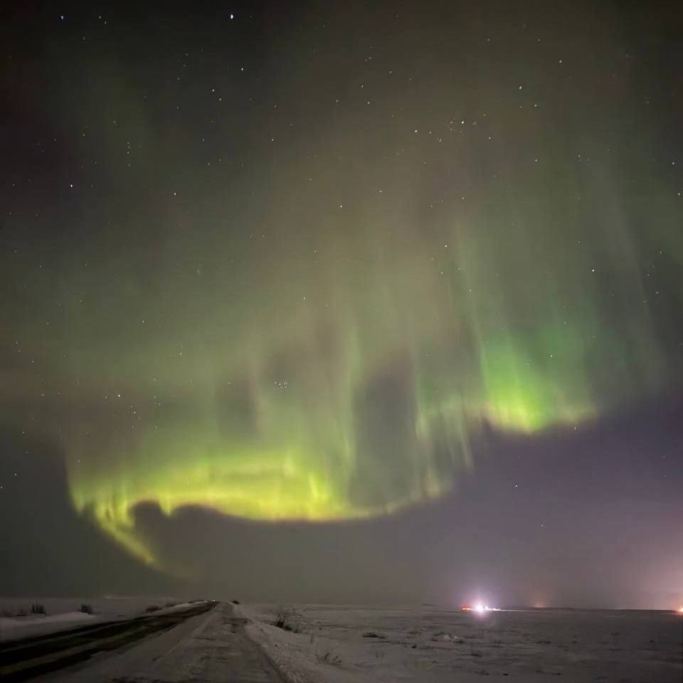 Зеленое свечение можно было увидеть в Якутске (фото 1), на Ладожском озере (фото 2) и на ключевом транспортном маршруте в Тазовском районе ЯНАО между селом Газ-Сале и поселком Тазовский (фото 3, 4).