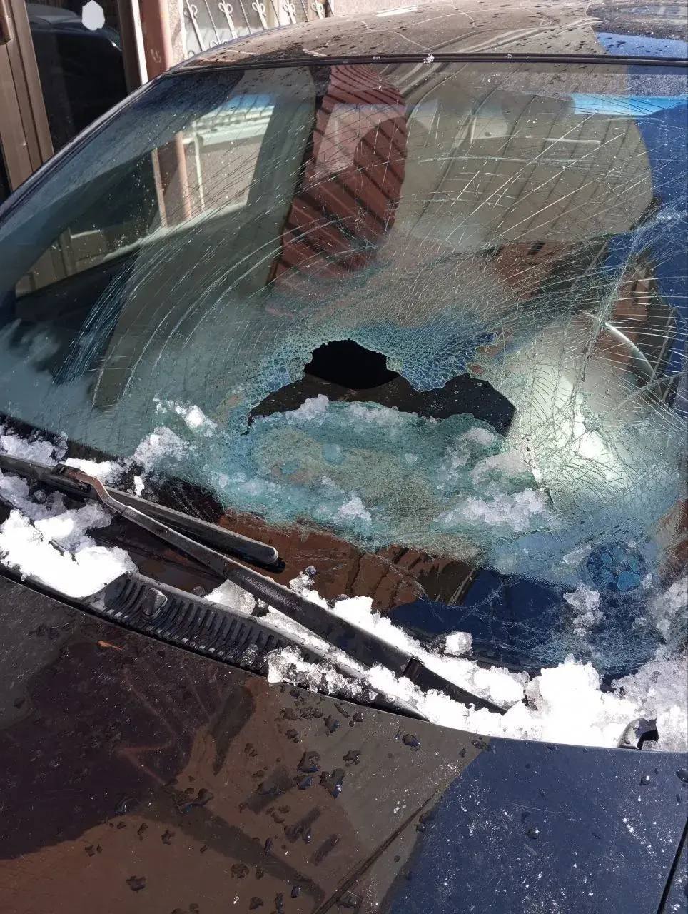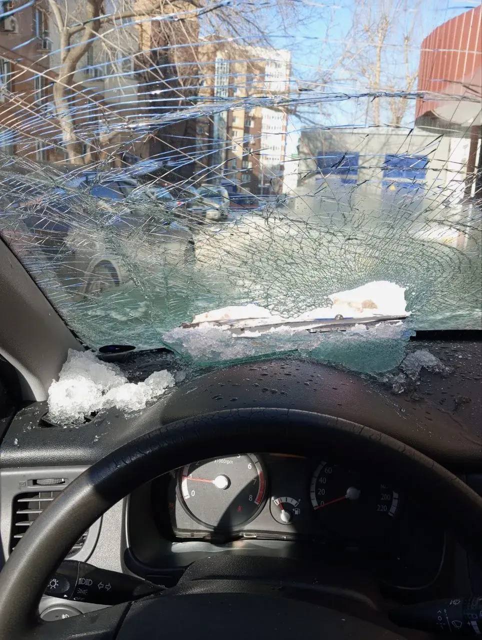 Снег рухнул на автомобиль на ул. Седова, 19/1.