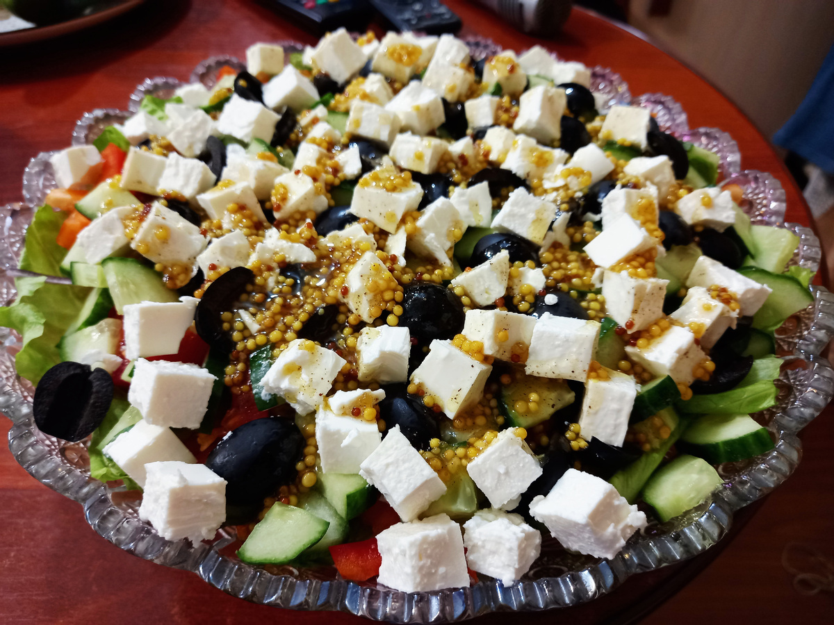 Салат "Греческий" — это не только изящное сочетание свежих ингредиентов, но и взрывной вкус, который подарит вам незабываемые ощущения. Легкий в приготовлении и невероятно аппетитный, этот салат станет настоящей звездой любого стола.
