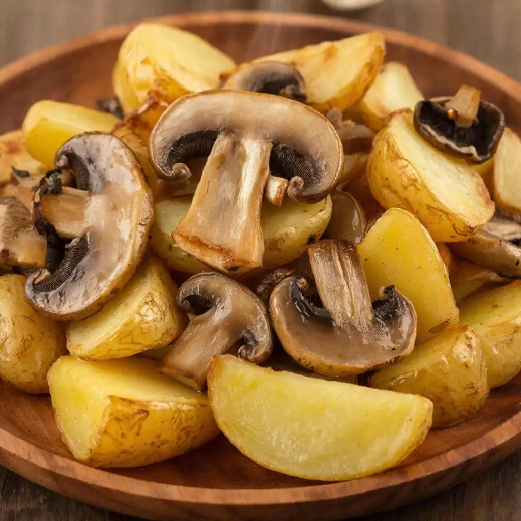 - Шампиньоны: Универсальные и доступные круглый год, прекрасно гармонируют с картофельными блюдами, особенно с луком и маслом.