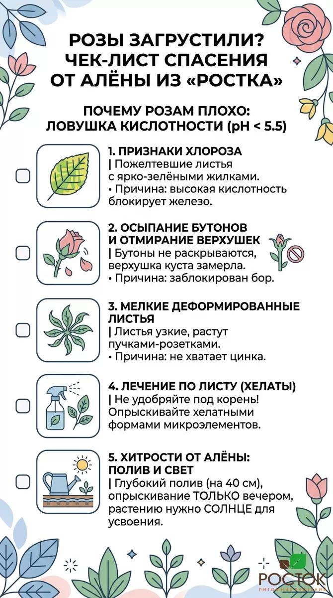 Слабое цветение роз может быть признаком нехватки микроэлементов, и нередко проблема кроется в чрезмерном закислении почвы. Простая ошибка может привести к заболеваниям растений и потере урожая.