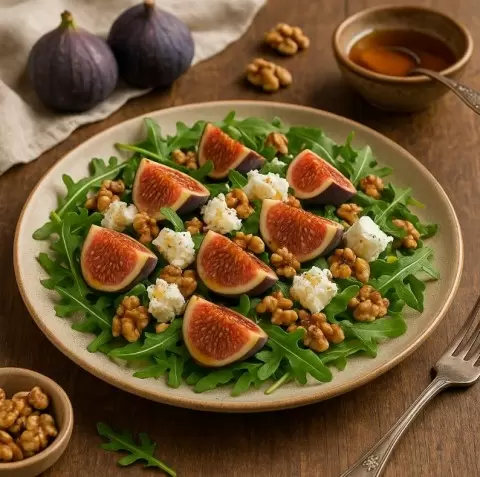 Салат с инжиром, козьим сыром и рукколой – это не просто блюдо, а настоящая симфония вкусов и текстур. Слияние сладости свежего инжира с легкой горечью рукколы и кремовой текстурой козьего сыра делает этот салат идеальным выбором как для лёгкого ужина, так и для праздничного стола.