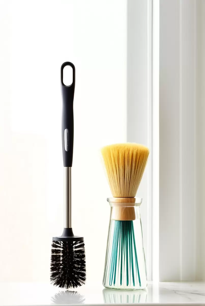- Ершики для бутылок и ваз: Эти модели идеально подходят для очистки узких ёмкостей, таких как детские бутылочки, спортивные фляги или высокие графины. С длинной и гибкой ручкой, обычно основанной на проволочном каркасе, они достигают даже самых отдаленных уголков. Щетина может быть нейлоновой, жесткой для удаления остатков пищи, или силиконовой, которая не царапает поверхности и легко дезинфицируется.
