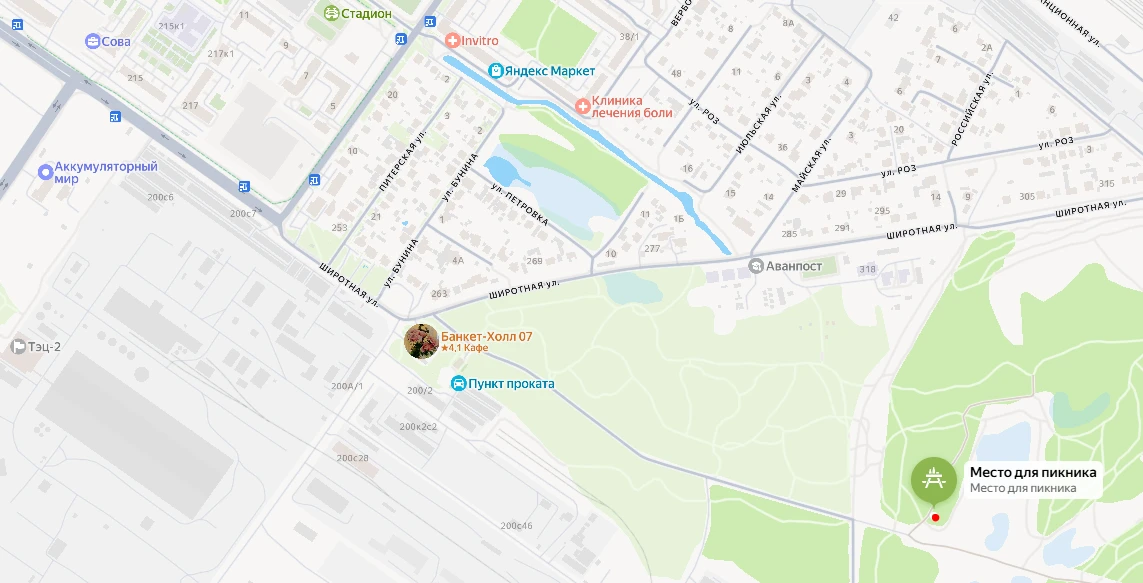 Откуда бы вы ни ехали, ближайший способ подъехать — через улицу Широтную. Двигайтесь по ней в сторону ТЭЦ-2. Проедете мимо территории станции (она останется по правую руку) и следуйте прямо до лесного массива. Примерно через 1,5 километра вы увидите оборудованную зону отдыха.
