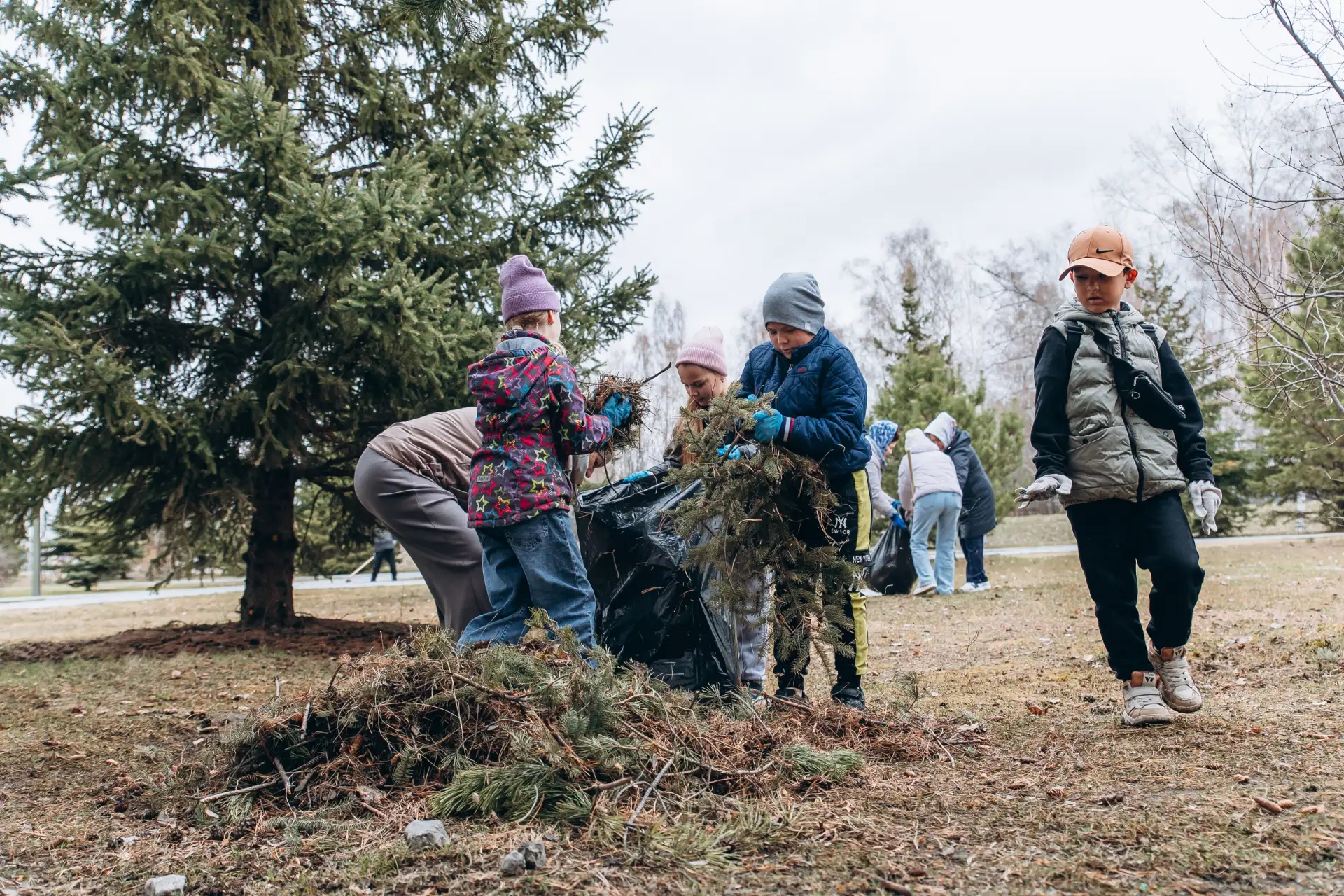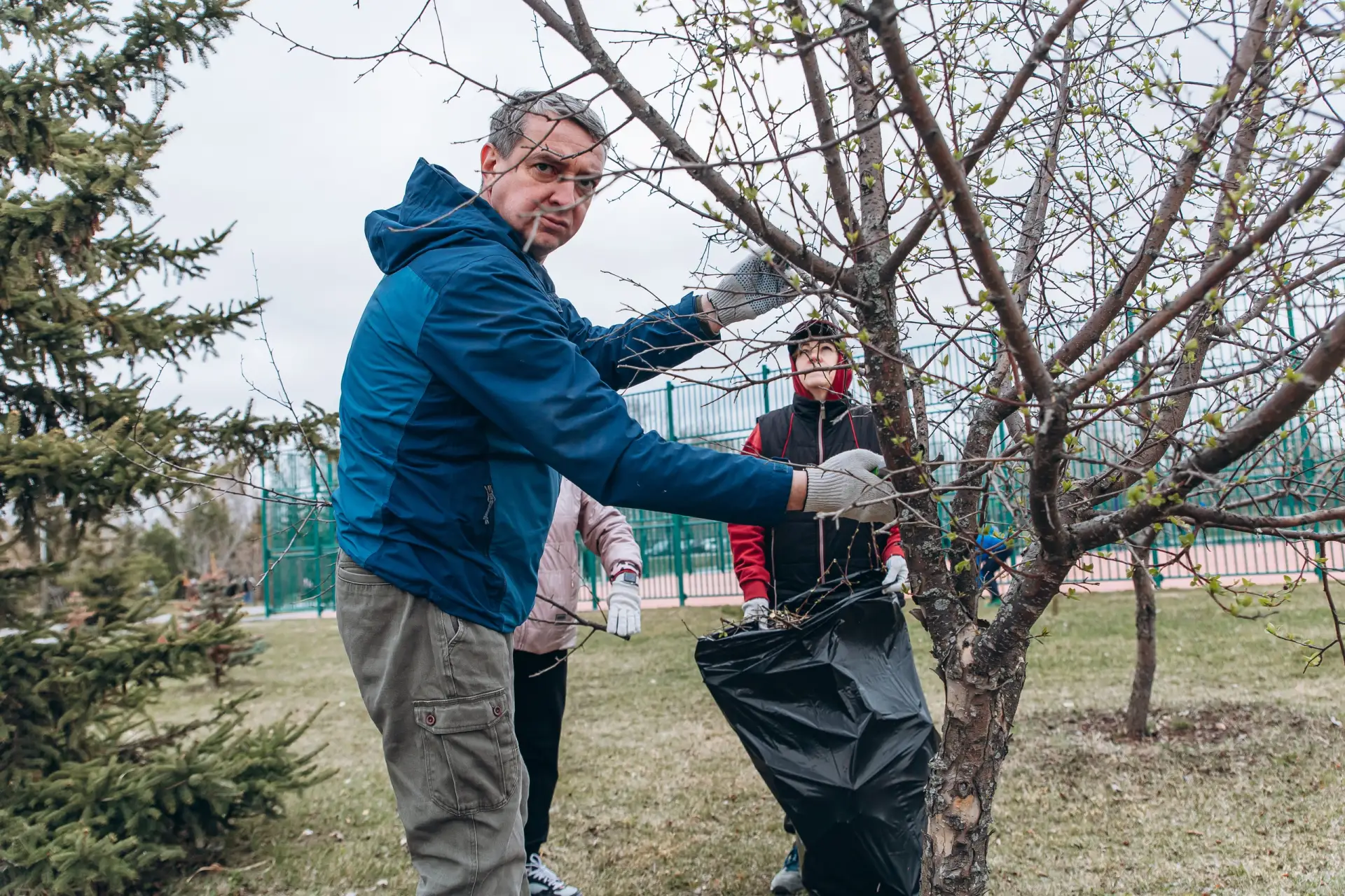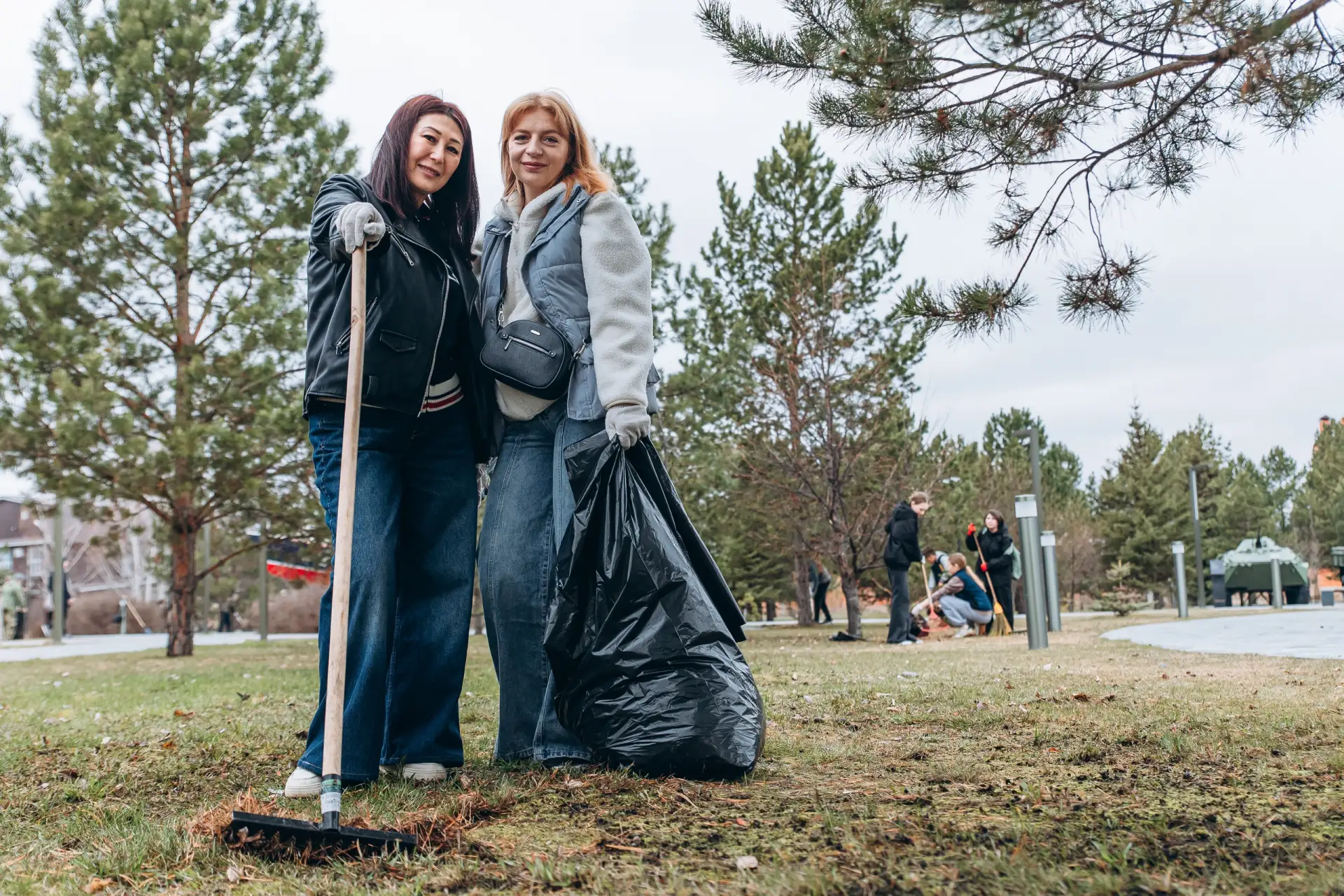 Орудовали граблями и метлами, собирали в мешки листву жители ж.р. Казарово, школьники и учителя школы № 52, ветераны-пограничники, специалисты управы Центрального округа.