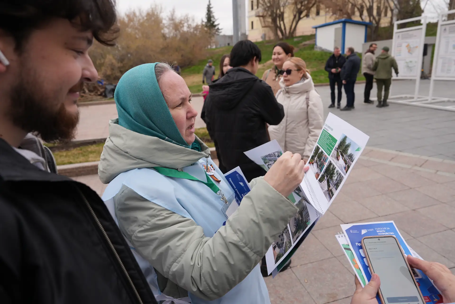 Зоя Егорова работает в детско-юношеском центре «Фортуна». И сегодня на площадке лога реки Тюменки в рамках Всероссийского дня чистоты и единства она работала волонтёром. Знакомила тюменцев с вариантами дизайн-проектов преображения сквера Сибирских кошек и площади Солнца, которые в 2027 году будут благоустроены в рамках федерального проекта «Формирование комфортной городской среды» национального проекта «Инфраструктура для жизни».