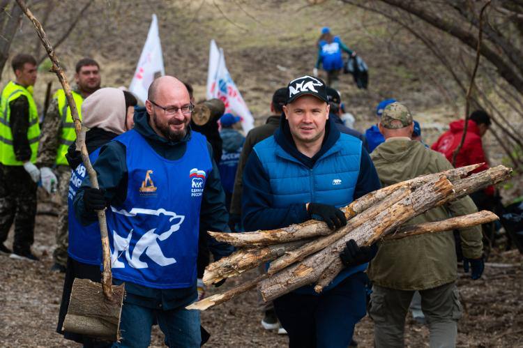 К субботнику на территории лога реки Тюменки присоединился губернатор Тюменской области Александр Моор 25 апреля