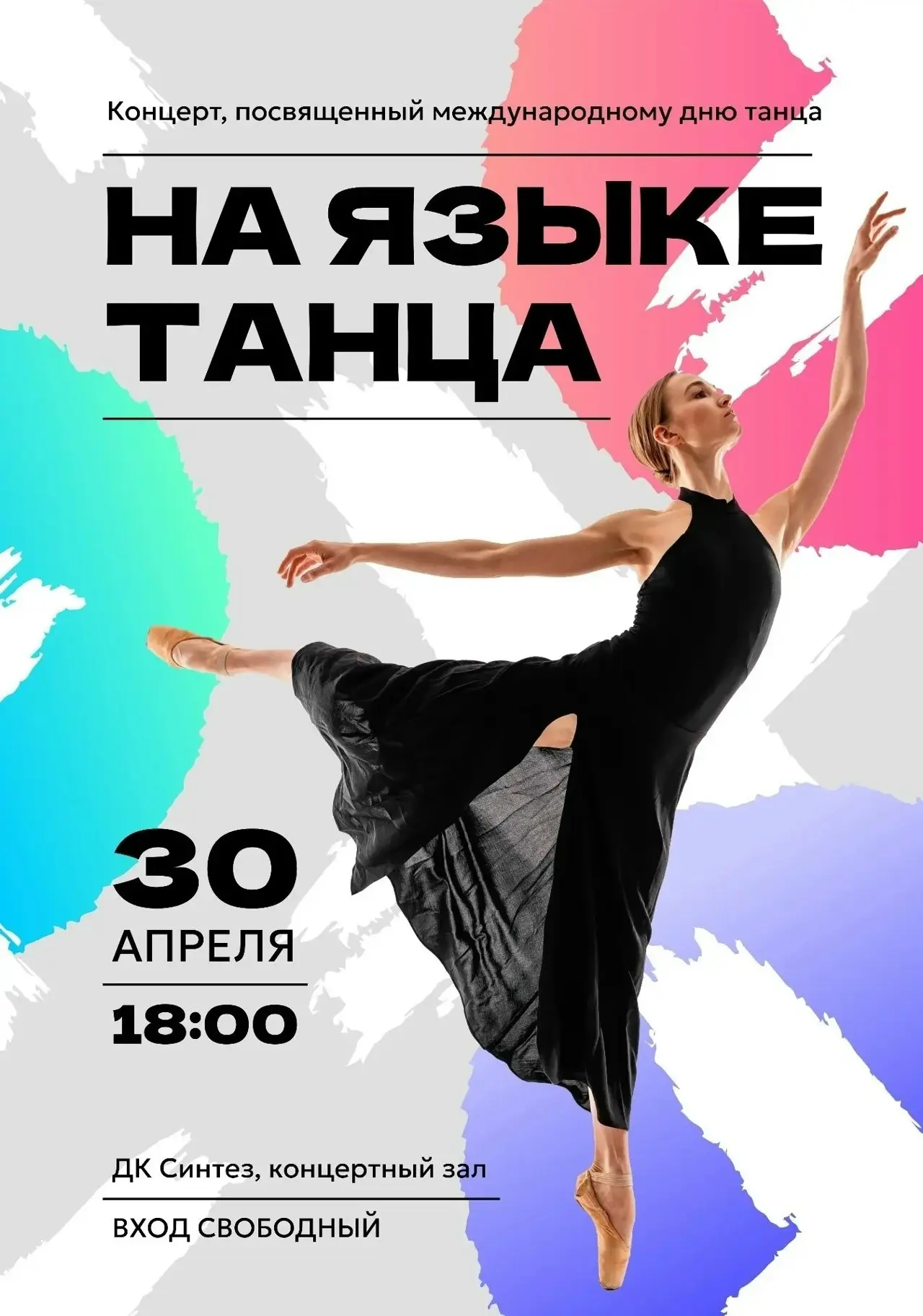 30 апреля в 18:00 в Доме культуры «Синтез» пройдет концерт «На языке танца», посвящённый Международному дню танца.