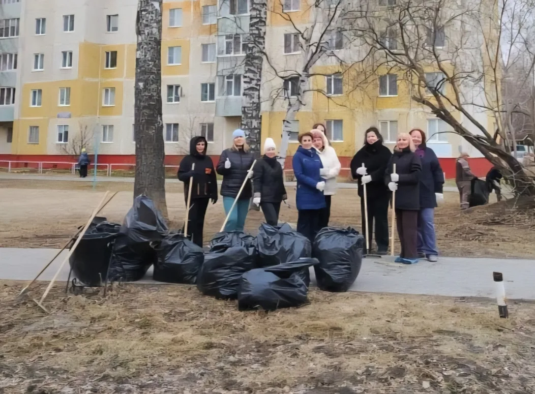 Сотрудники приняли участие в общегородском субботнике: собрали ветки, прошлогоднюю листву и убрали мусор.