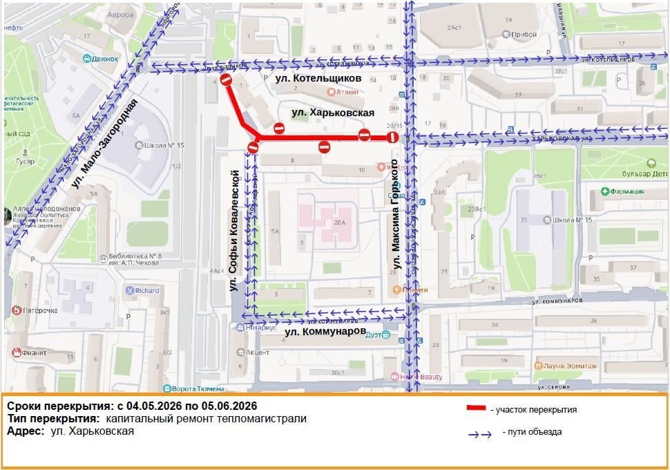 В Тюмени на месяц перекроют улицу Харьковскую