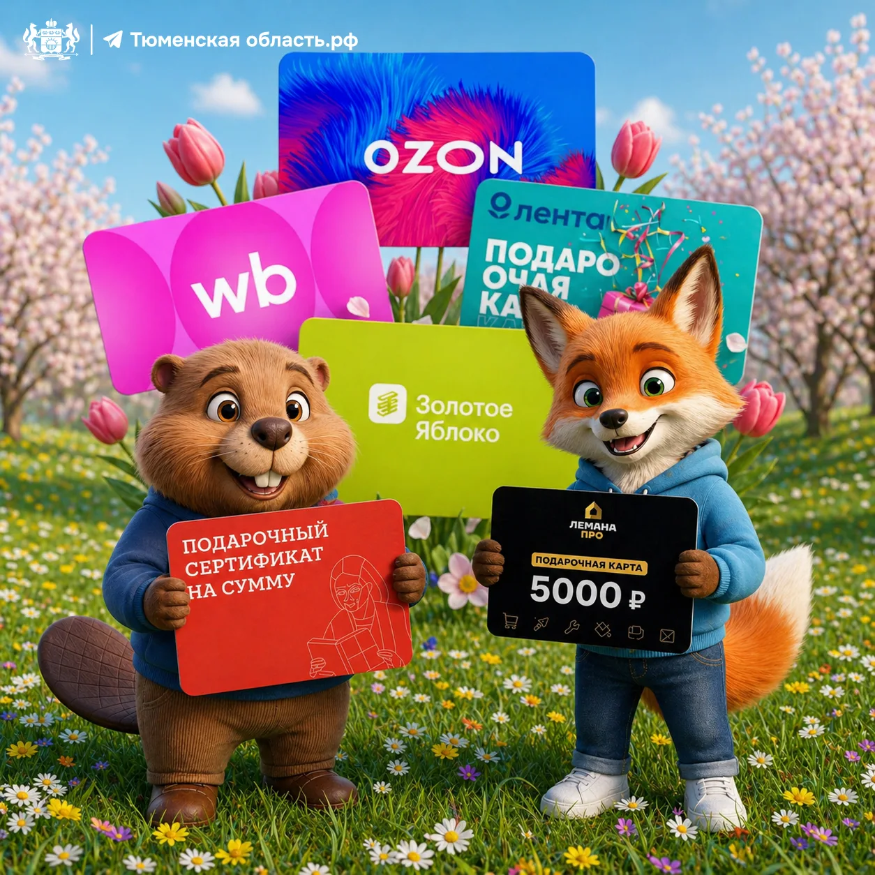 Сертификаты в «Золотое Яблоко», «Ленту», Ozon, Wildberries, «Лемана Про», ресторан «Сыроварня», ресторан «Техникум», ресторан «Сорренто».