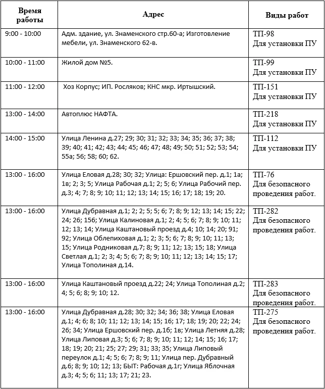 В городе будут производиться временные отключения электроэнергии. Эти работы необходимы для обеспечения надежного и качественного электроснабжения ваших домов и предприятий в будущем.