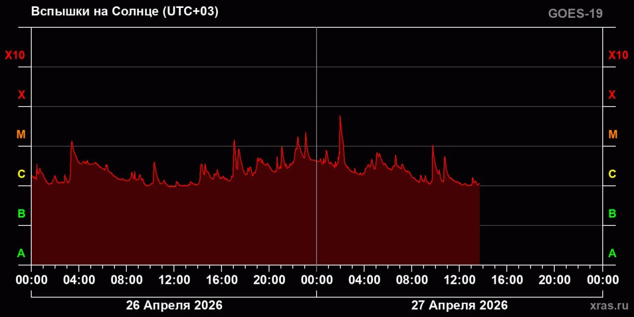 Они достигли пятого уровня мощности из семи. Последние 48 часов индекс солнечной активности остаётся высоким — 7,9 балла из десяти по оценке Лаборатории солнечной астрономии ИКИ РАН.