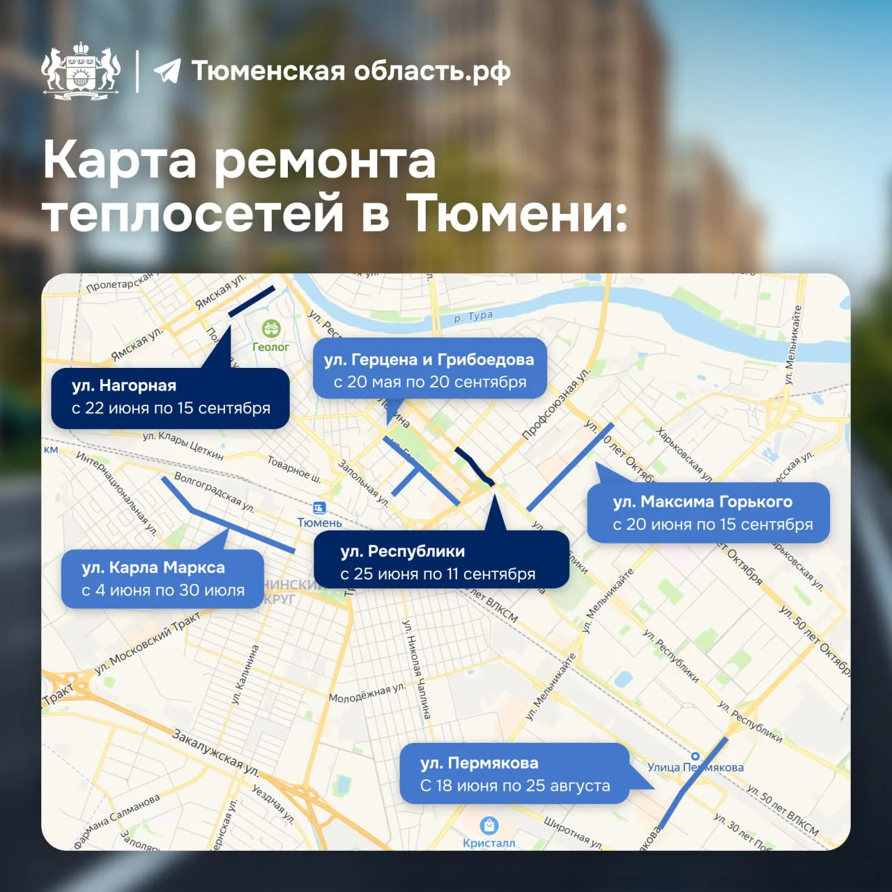 Где перекроют улицы во время ремонта теплосетей в Тюмени