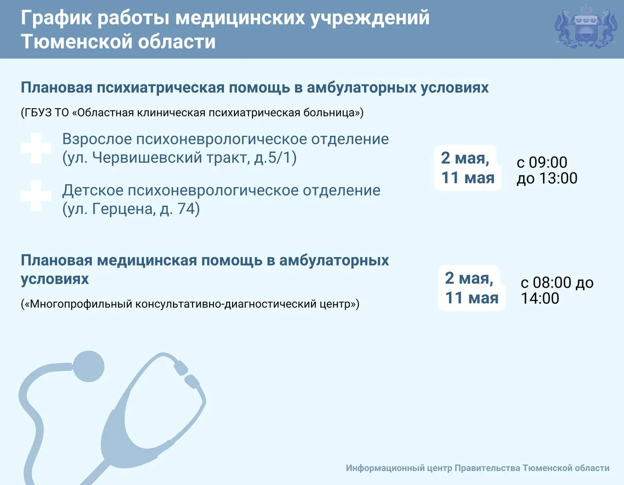 График работы медучреждений Тюменской области с 1 по 11 мая