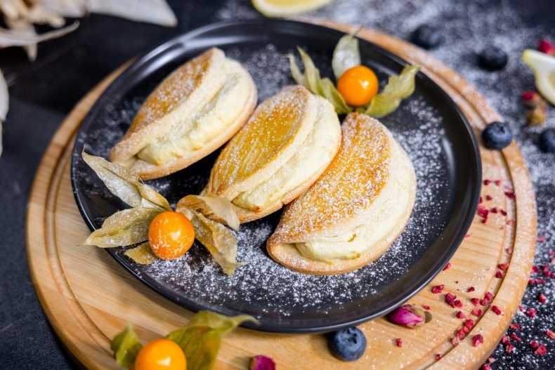 Соединить в глубокой миске 210 г муки, разрыхлитель, сливочное масло и соль. Перетереть смесь до состояния крошки. Затем добавить одно яйцо и замесить унифицированное тесто. Завернуть его в пленку и поставить в холодильник на 30 минут.В блендер поместить творог, один яичный желток, сметану, сахарную пудру и 30 г муки. Измельчить все до однородной консистенции.Сформировать из теста цилиндр и нарезать его на 6 кусочков одинакового размера.На равной поверхности, присыпанной мукой, раскатать каждую заготовку в круг толщиной около 2 мм. Для аккуратного края желательно использовать металлическое кольцо.На одну половину каждого круга выложить творожную начинку, осторожно прикрыть другой половиной и разместить на противне, выстланном пергаментом.Смазать готовые сочники желтком и запекать в разогретой до 180°C духовке около 30 минут.После выпекания дать сочникам немного остыть, а затем посыпать сахарной пудрой и украсить ягодами.Каждый кусочек этого лакомства будет напоминать о детстве. Погружаясь в мир творчества на кухне, можно не только порадовать себя, но и удивить радостью близких!