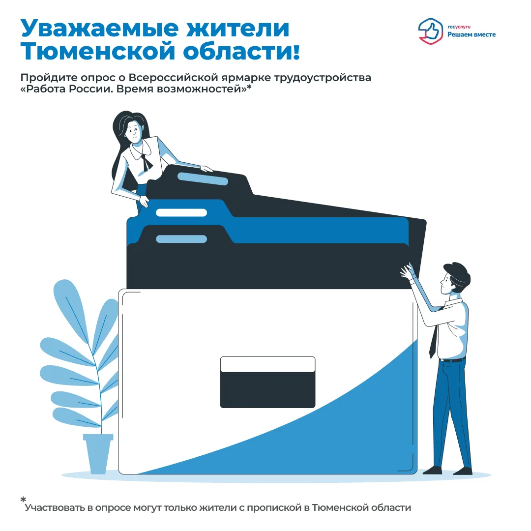 Приглашаем принять участие в небольшом опросе о Всероссийской ярмарке трудоустройства «Работа России. Время возможностей» людей, ищущих работу!
