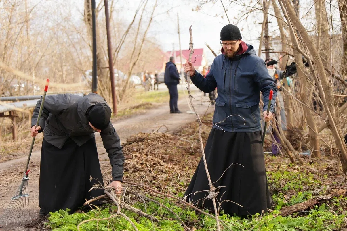 Продолжаем делать город чище. Сегодня к нам присоединился Владыка. Все вместе мы наводим порядок на территории Знаменского монастыря (Декабристов, 21) у стен самого древнего храмового комплекса в Сибири.
