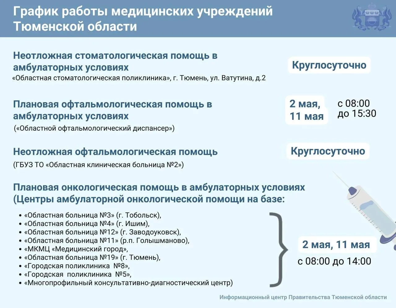 График работы медучреждений Тюменской области с 1 по 11 мая