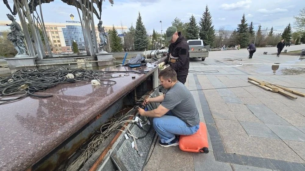 На объекте уже началась очистка чаши, проверка и обслуживание насосного оборудования, а также разводка и тестирование электрических систем. В ближайшие дни планируется монтаж и настройка контуров фонтана, после чего пройдут пробные запуски.