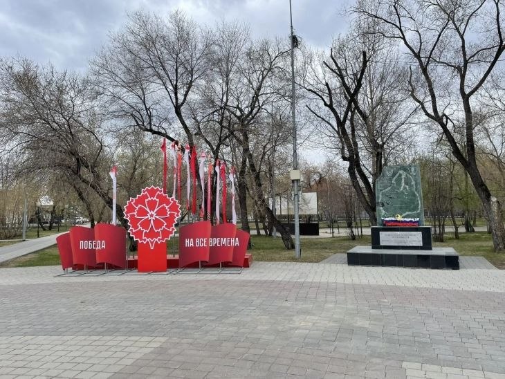 Улицы, площади, фасады зданий и витрины в Тюмени украшают символикой Великой Победы к празднованию 9 мая