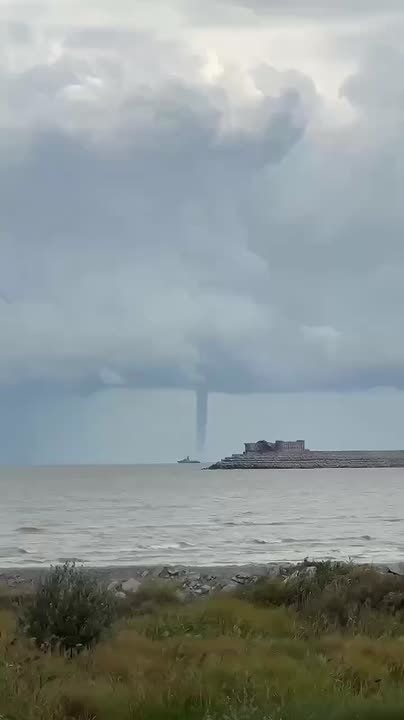Гигантский водяной смерч образовался сегодня над морем в Каспийске, Дагестан. Местные жители рассказали, что воронку было видно даже из окон домов.МегаТюмень